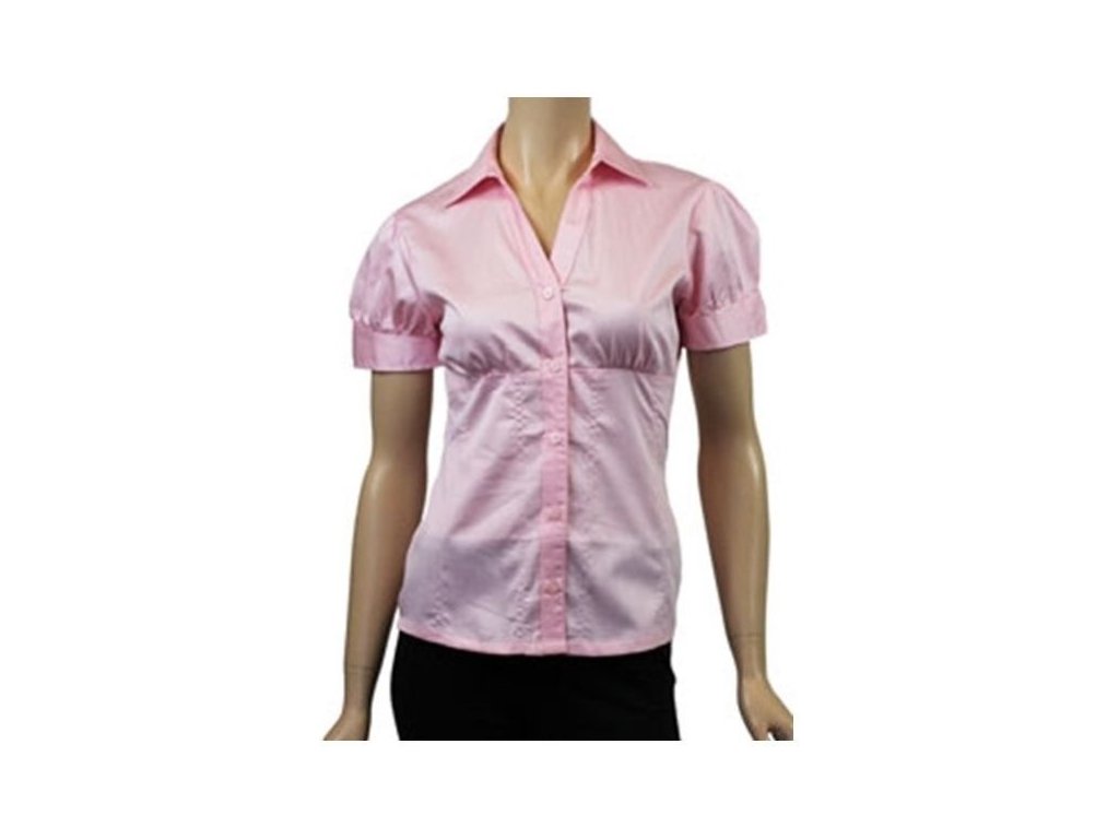 Dámská košile, krátký rukáv, zapínání na knoflíčky. Vypasovaný střih, přestřižení pod prsy. Barva růžová.