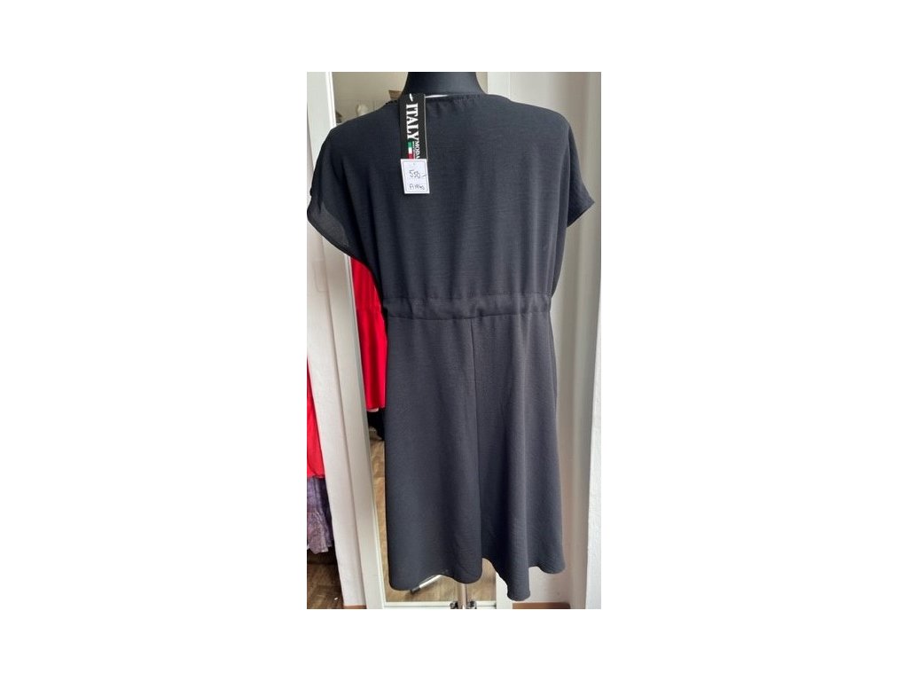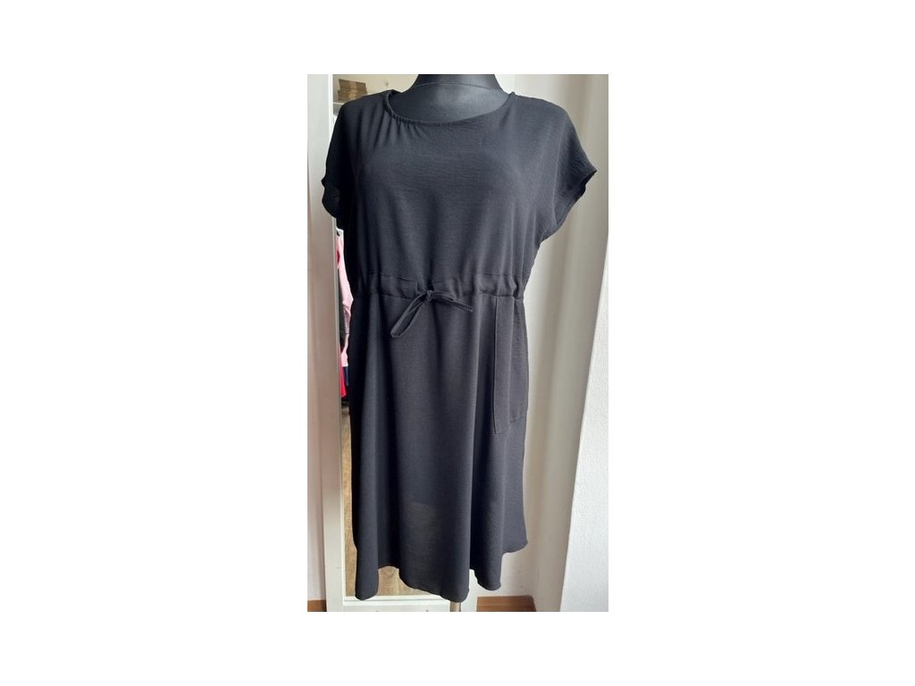 Dámské / dívčí šaty. Barva černá. Kulatý výstřih, krátký rukáv. Rovný volnější střih, v pase je lze stáhnout šňůrkou. 2 kapsy. Lze nosit klasicky jako šaty, popř. i přes legíny jako tuniku.