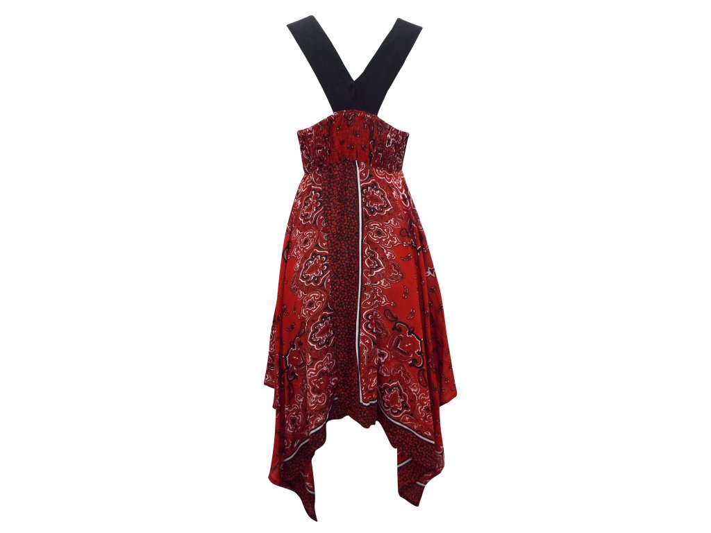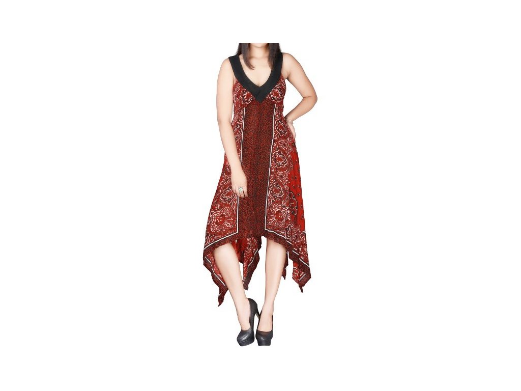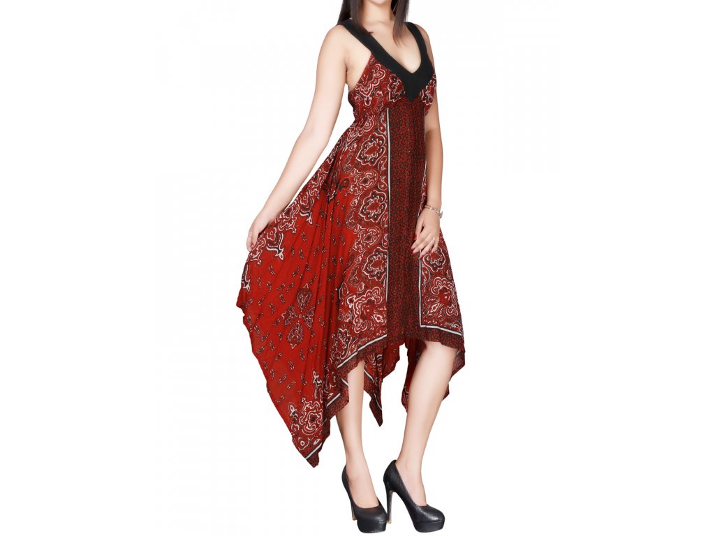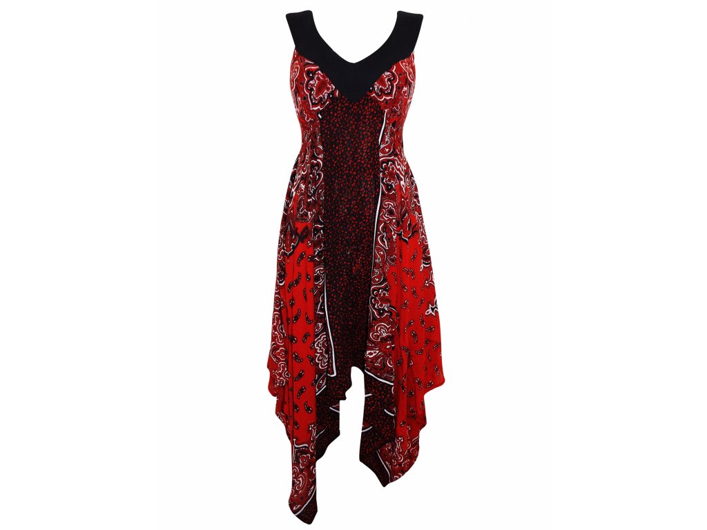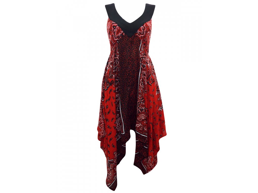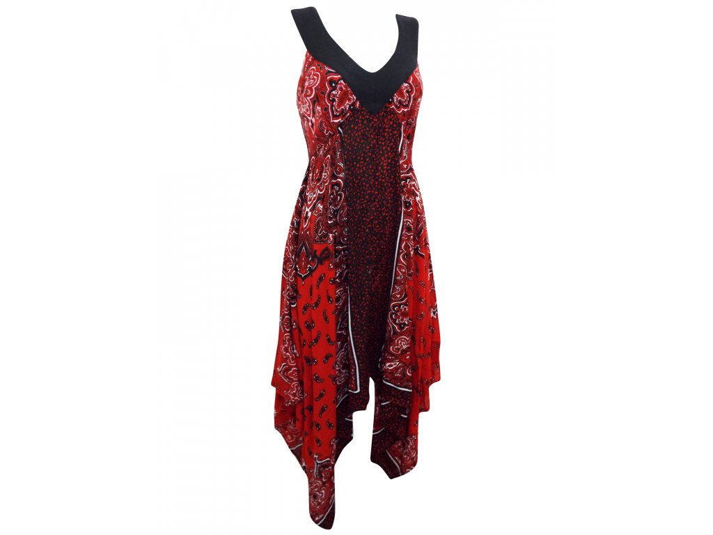 Dámské šaty, barva červeno-černo-bílá. Na ramínka, cípatá sukně. Vzdušné, pohodlný střih - neobepínají.