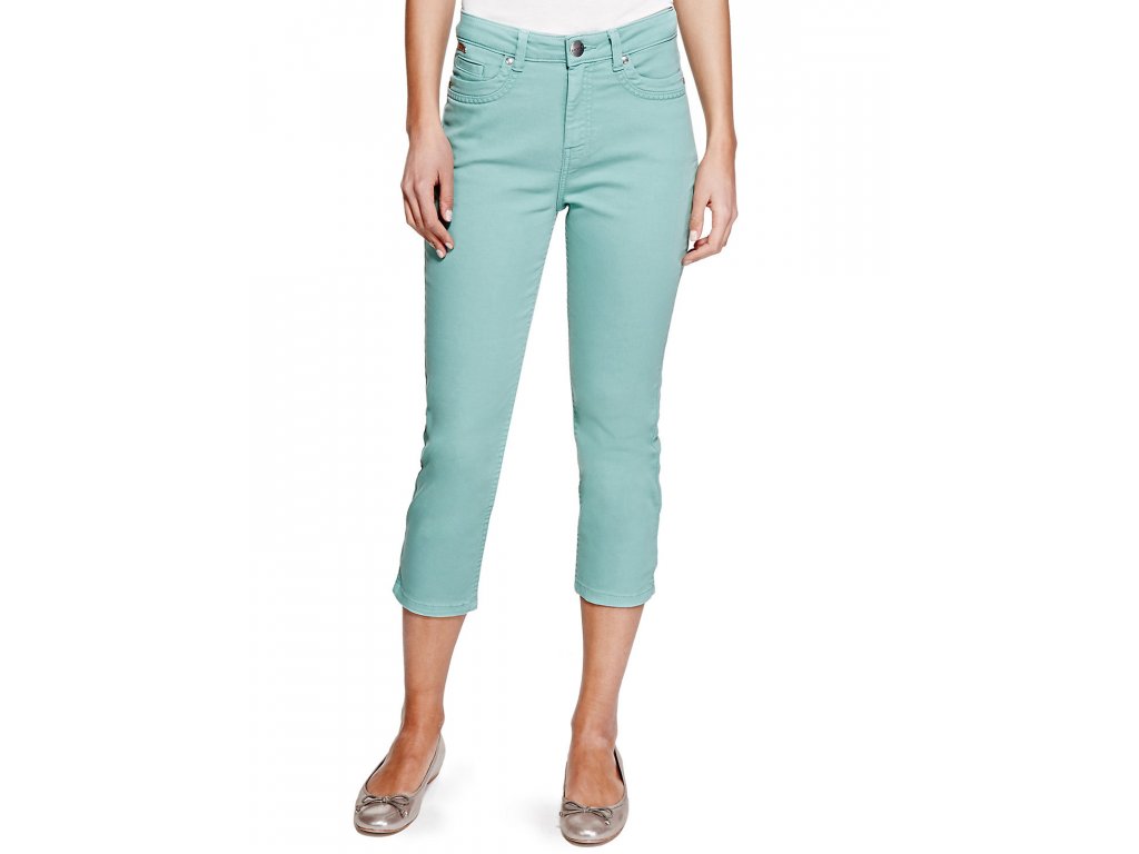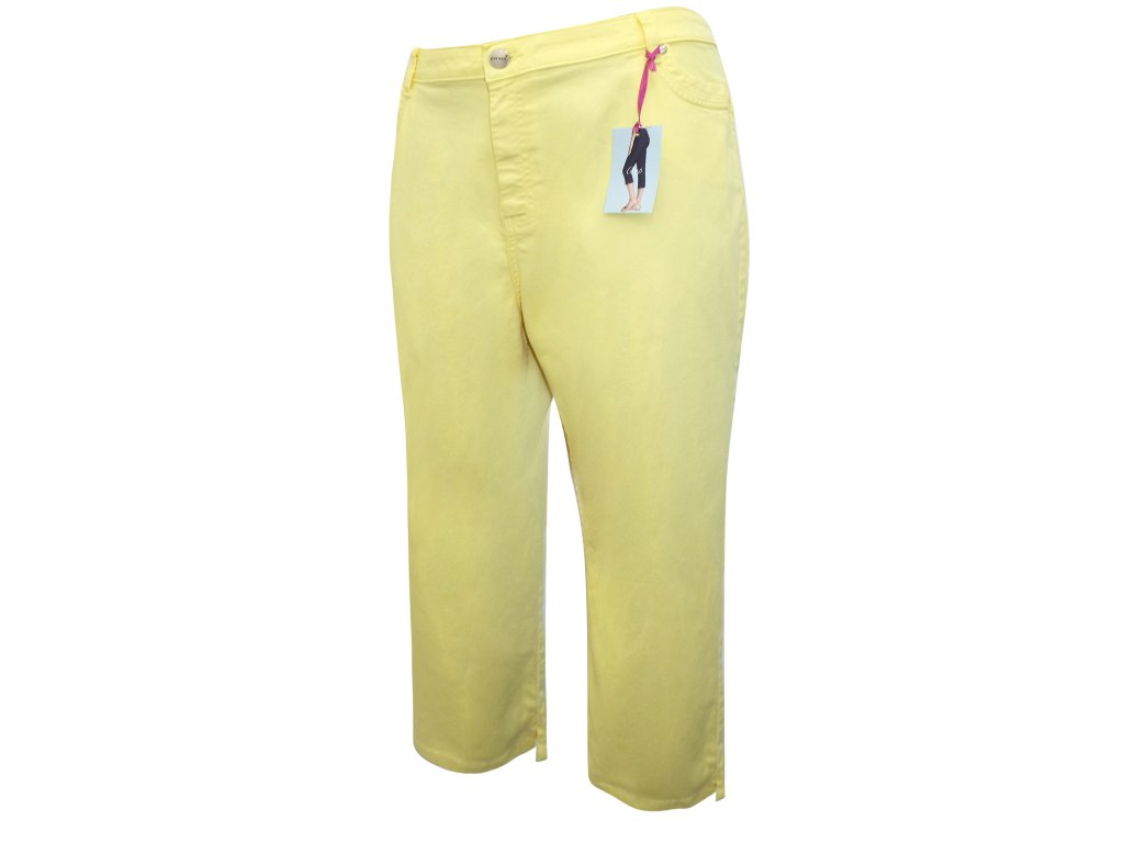 Dámské kalhoty, barva žlutá. Délka pod kolena, capri. Pružný materiál, pohodlné na celodenní nošení. Foto zelených kalhot pro lepší reálnou představu.