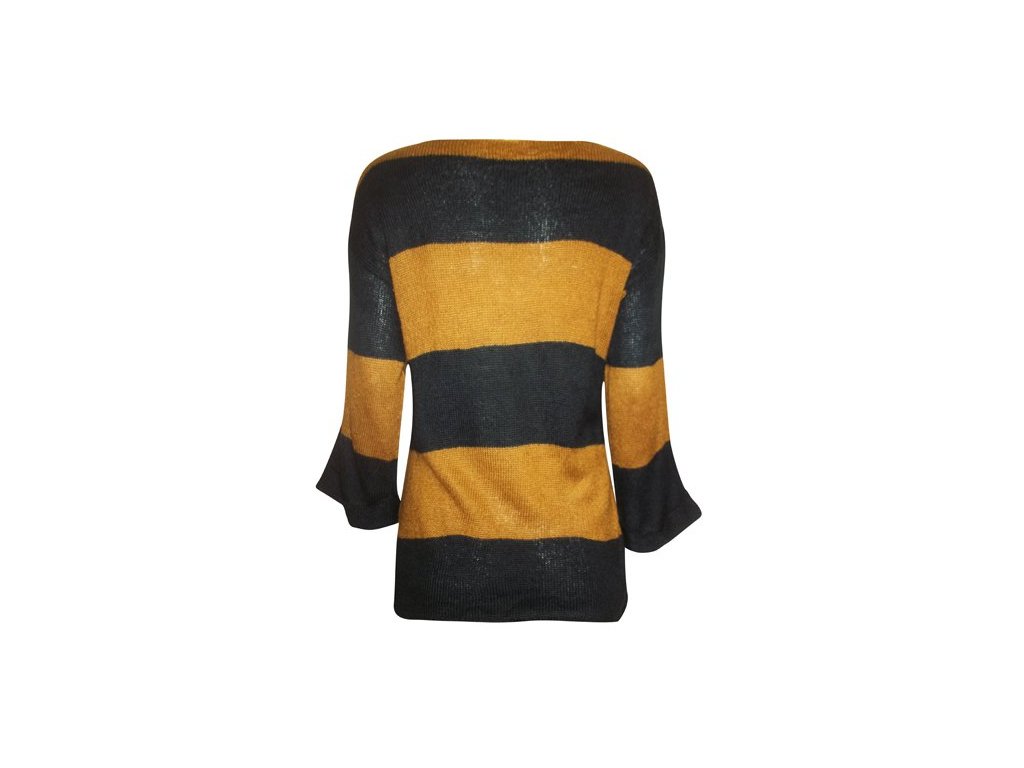 Dámský svetr, vzor široké pruhy v hnědé a černé. Slabší materiál. Pružný.