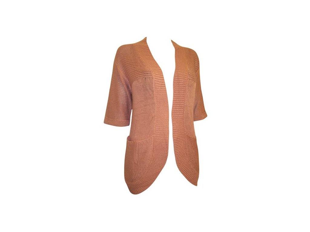 Dámský svetr/kardigan. Přední díl otevřený, bez zapínání. Barva tm. růžovo-hnědá.